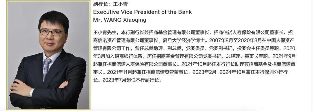招商银行此前发布的简历显示,王小青1971年10月出生,复旦大学政治经济学博士研究生学历,经济师,有基金、保险、资管、银行“四栖”经验,是名副其实的“多面手”。