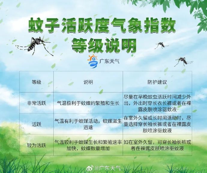 8月1日19时千汇网,广东省气象局、广东省疾病预防控制局联合发布广东蚊子活跃度气象指数: